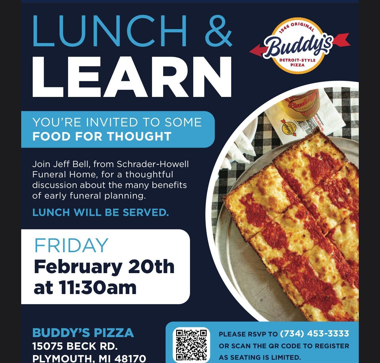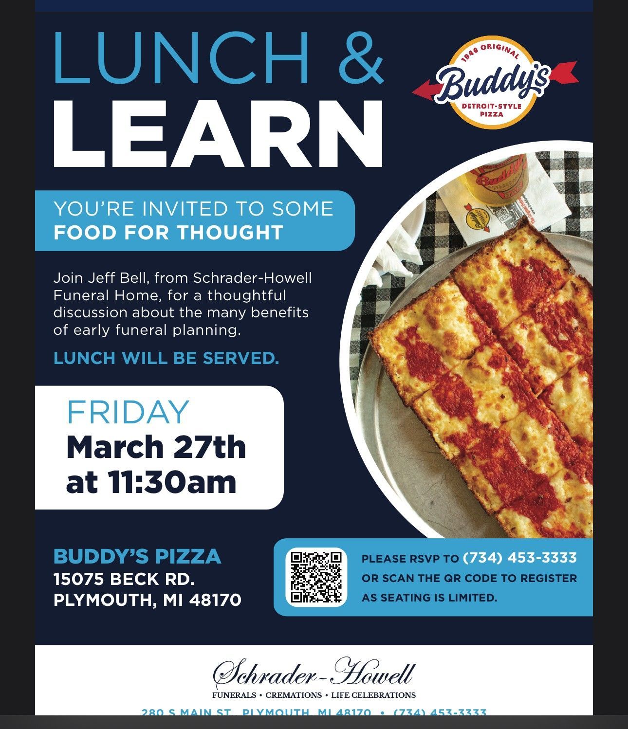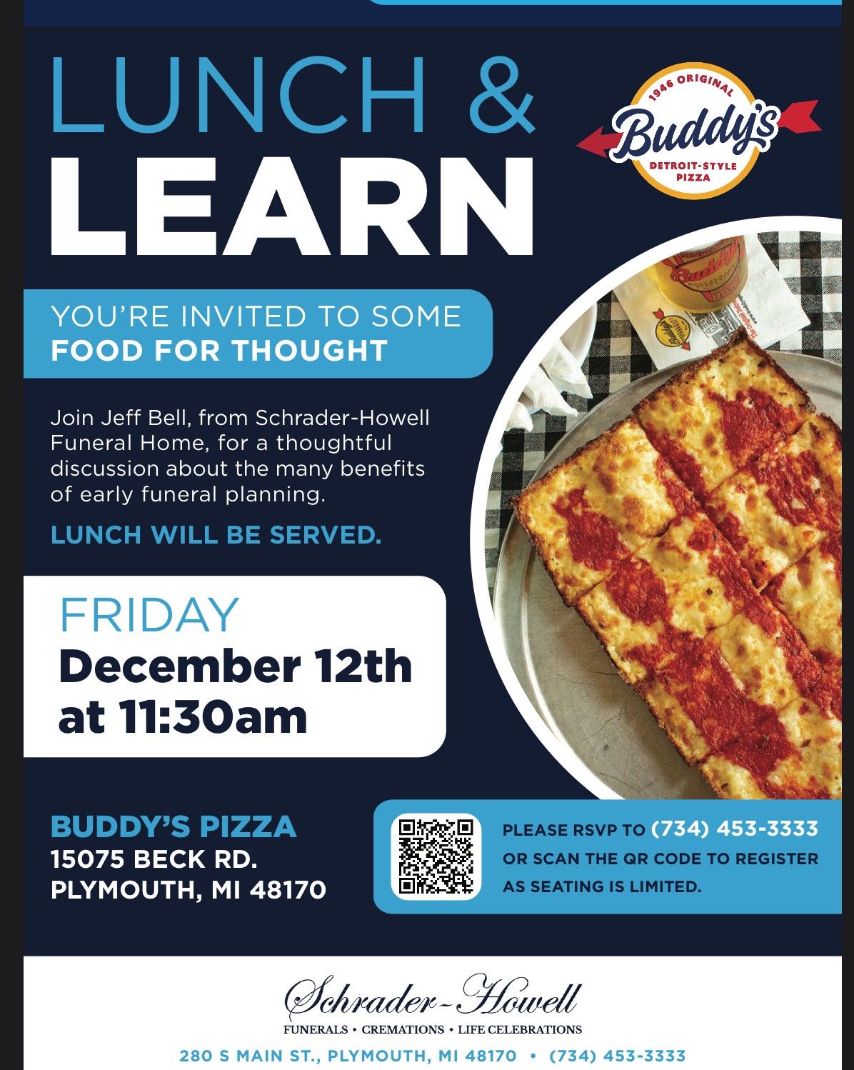 Schrader-Howell Funeral Home for a thoughtful discussion about the many benefits of early funeral planning. Lunch will be served